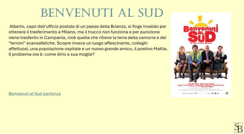 In a lesson, we explored some of the perceptions and stereotypes that are prevalent in Italy with regards to the different cultures of northern and southern Italy. A humorous way to explore these stereotypes was through Italian cinema and the film "Benvenuti al Sud". It's a lovely film to watch in Italian, but you can also watch it in English- it's called "Welcome to the South". My cousin, Laura, gave me the dvd many years ago and it's been enjoyed lots of times! Both Laura and my brother are film buffs and my go to people for all things cinema related!